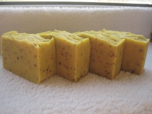 Ik was zo content van mijn eerste wortelzeep met toegevoegde HE ylang-ylang, kaneel, sinaasappel en vuilboom  dat ik er gisteren nog een gemaakt heb .  Ik heb niks veranderd aan mijn recept, en ik  heb er op het einde gedroogde hibiscus toegevoegd. De geur vind ik ok, het ruikt helemaal niet naar zeep maar naar een megstel van alle EOs.