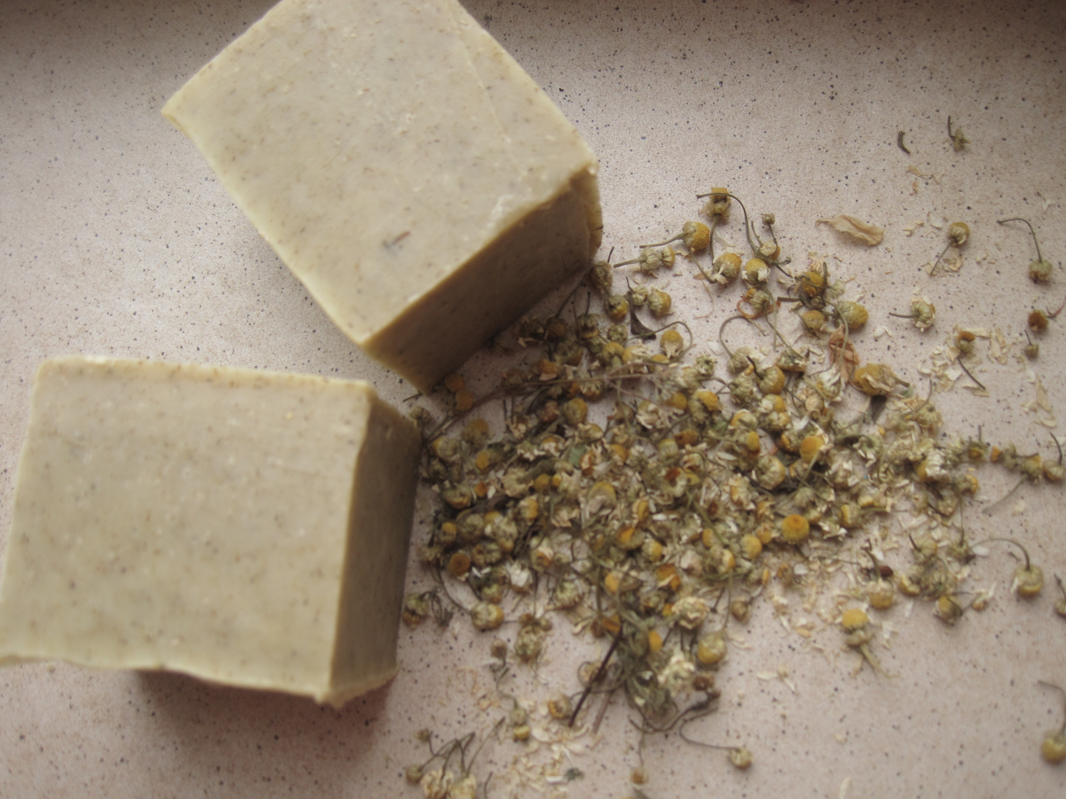 J’ai fait un savon pour la peau délicate et sensible de bébé. Sa composition: l’huile de ricin, de cocos, d’olive, de colza, l’huile de palme, macérat huileux de camomille et de la camomille séche. Sans huiles essentielles. La camomille allemande est connue pour ses aptitudes anti-inflammatoires exceptionnelles. C’est un allié très efficace pour la lutte contre de nombreux problèmes d’irritations cutanées.