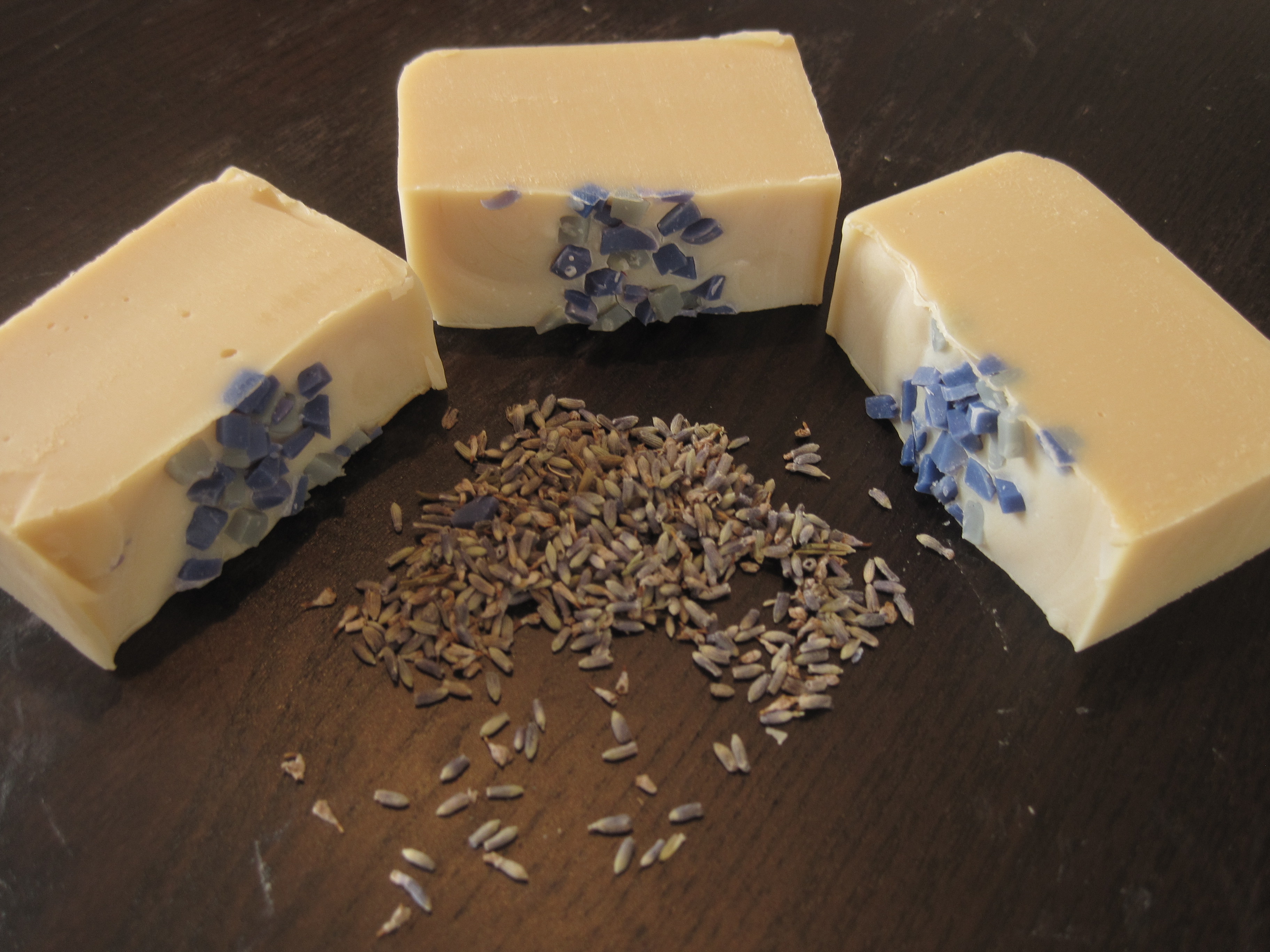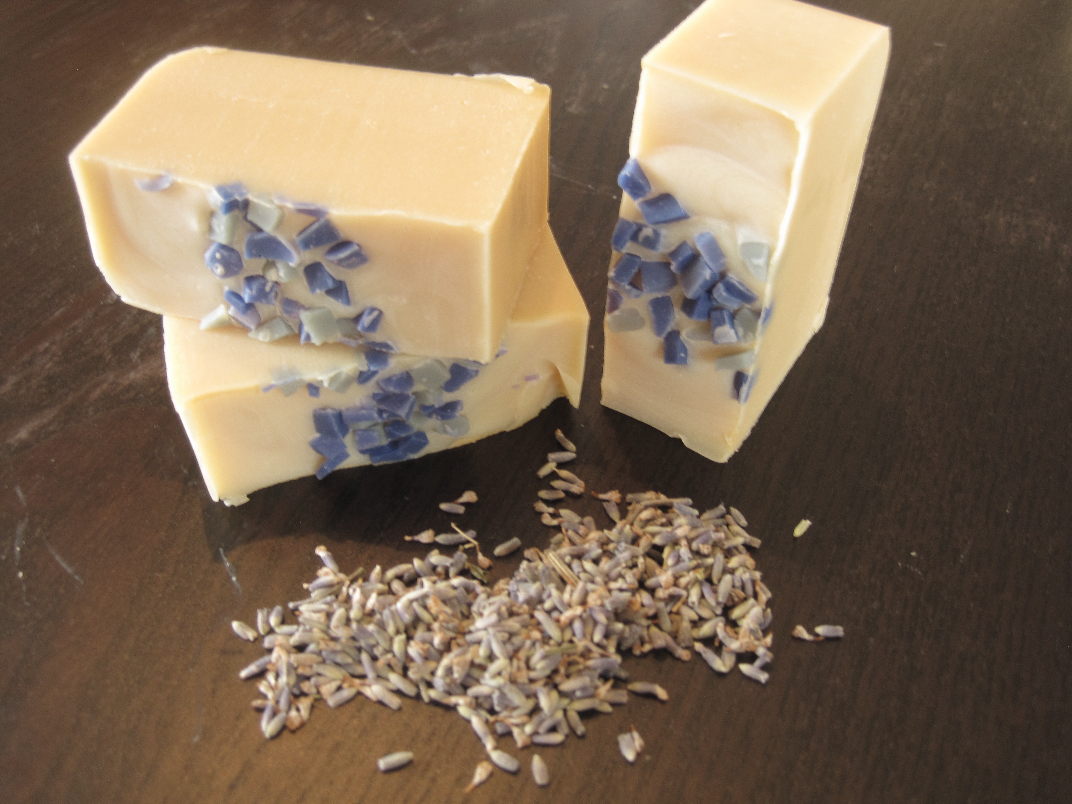 Mon savon contient  2/3 lait de chèvre et 1/3 lait battu. Le lait de chèvre est l’un de mes ingrédients favoris dans la fabrication du savon, grâce à son Ph qui est très proche à celui du Ph humain. Parce que le lait battu nettoie la peau en profondeur en l’hydratant, j’ai pensé à l’introduire aussi parmi mes ingrédients.