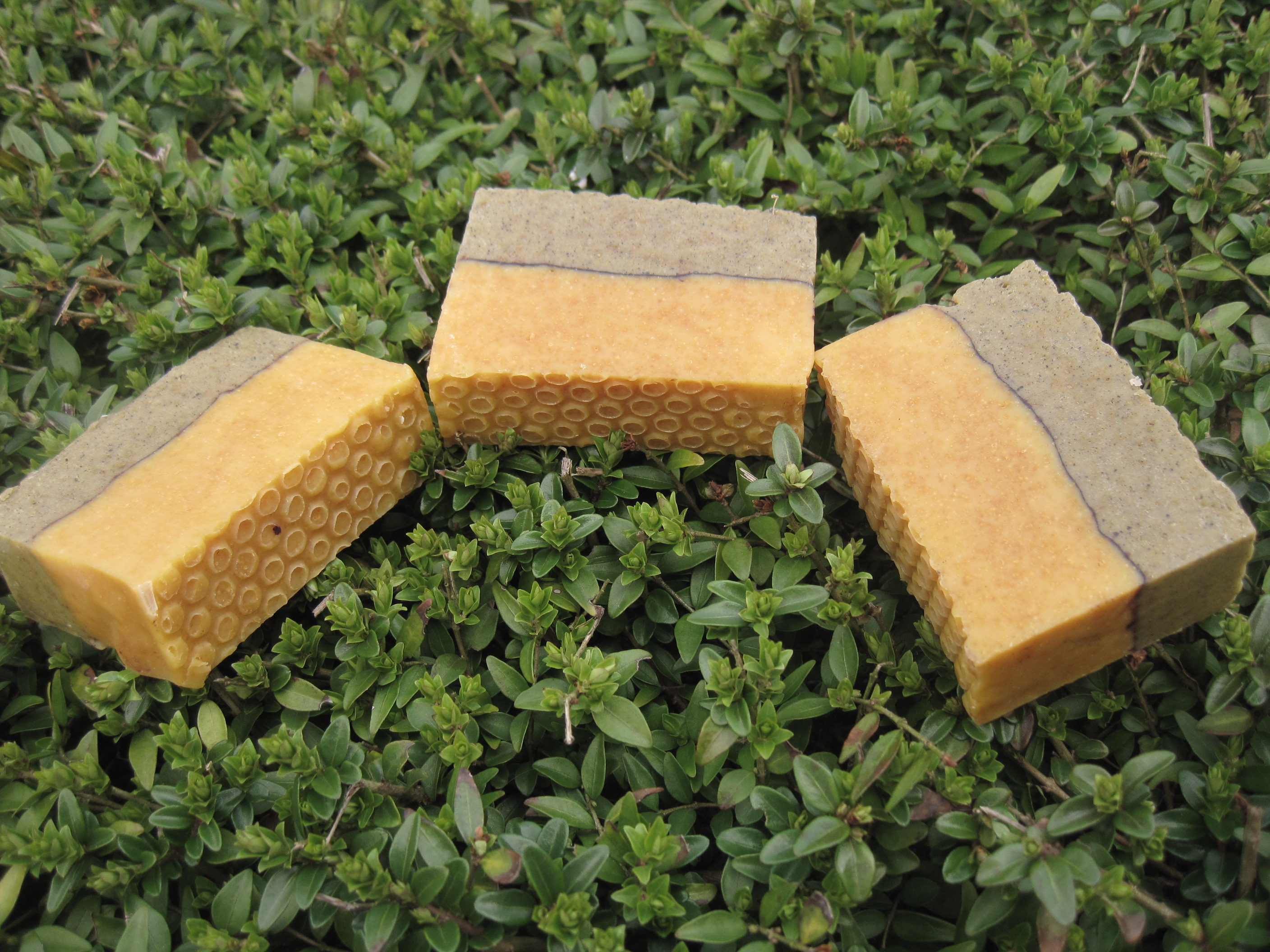 Making soap has become an obsession . I see in everyting a possible ingredient for my soaps. I know it seems strange but this is the 1st time I have tried  honey and wax together in a soap. I wanted the darker part to be a black one, that’s why I used the black clay but I was surprised to see it transform in a green colour. I like to drink my everyday tea with honey and lemon and  that’s why I scented my soap with lemon (and a little bit of orange EO). Can’t wait to try this honey soap…