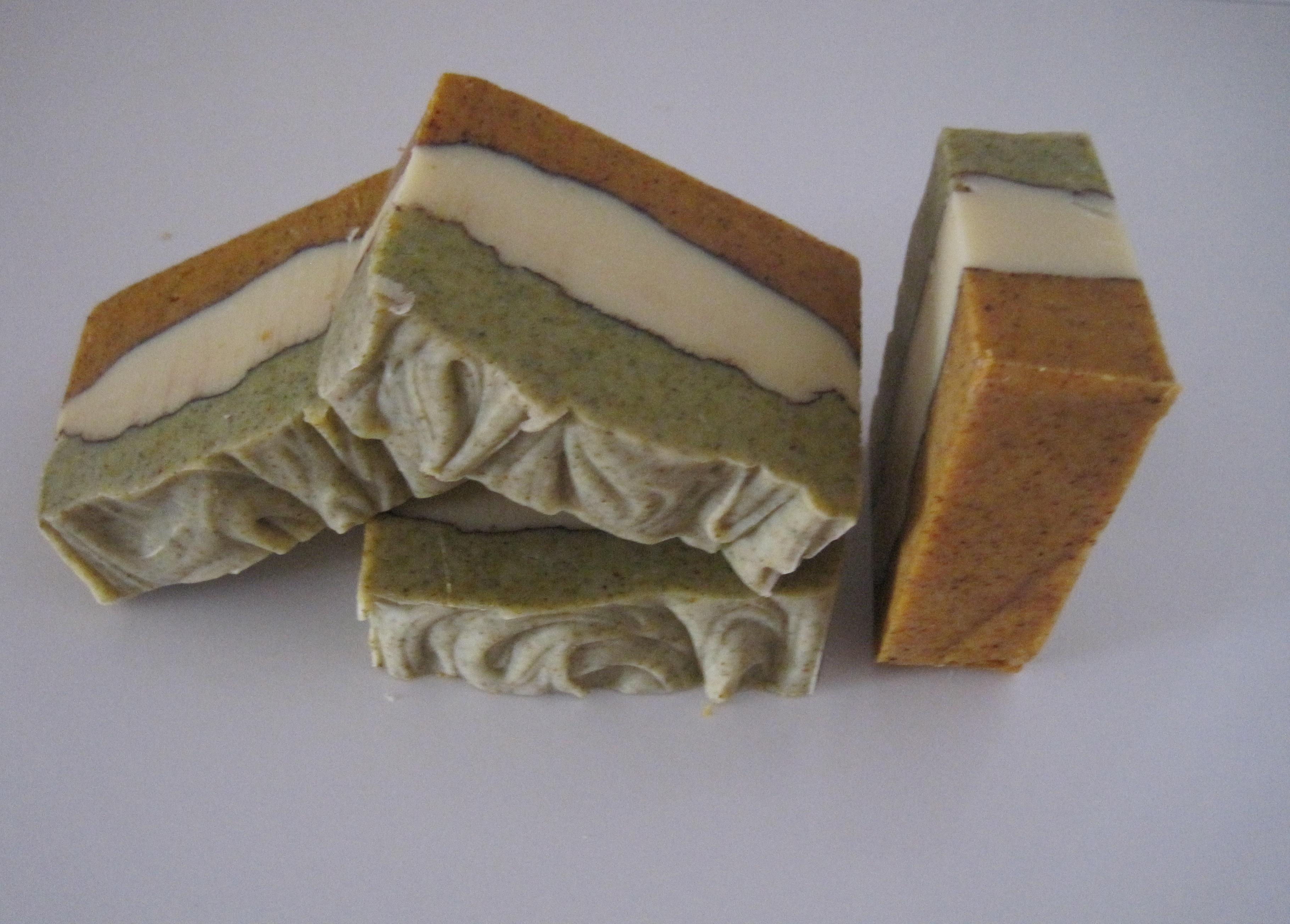I cannot translate the whole post,as I’m on the phone,but I understood the soap’s made with curuma & nettle end essential oils.