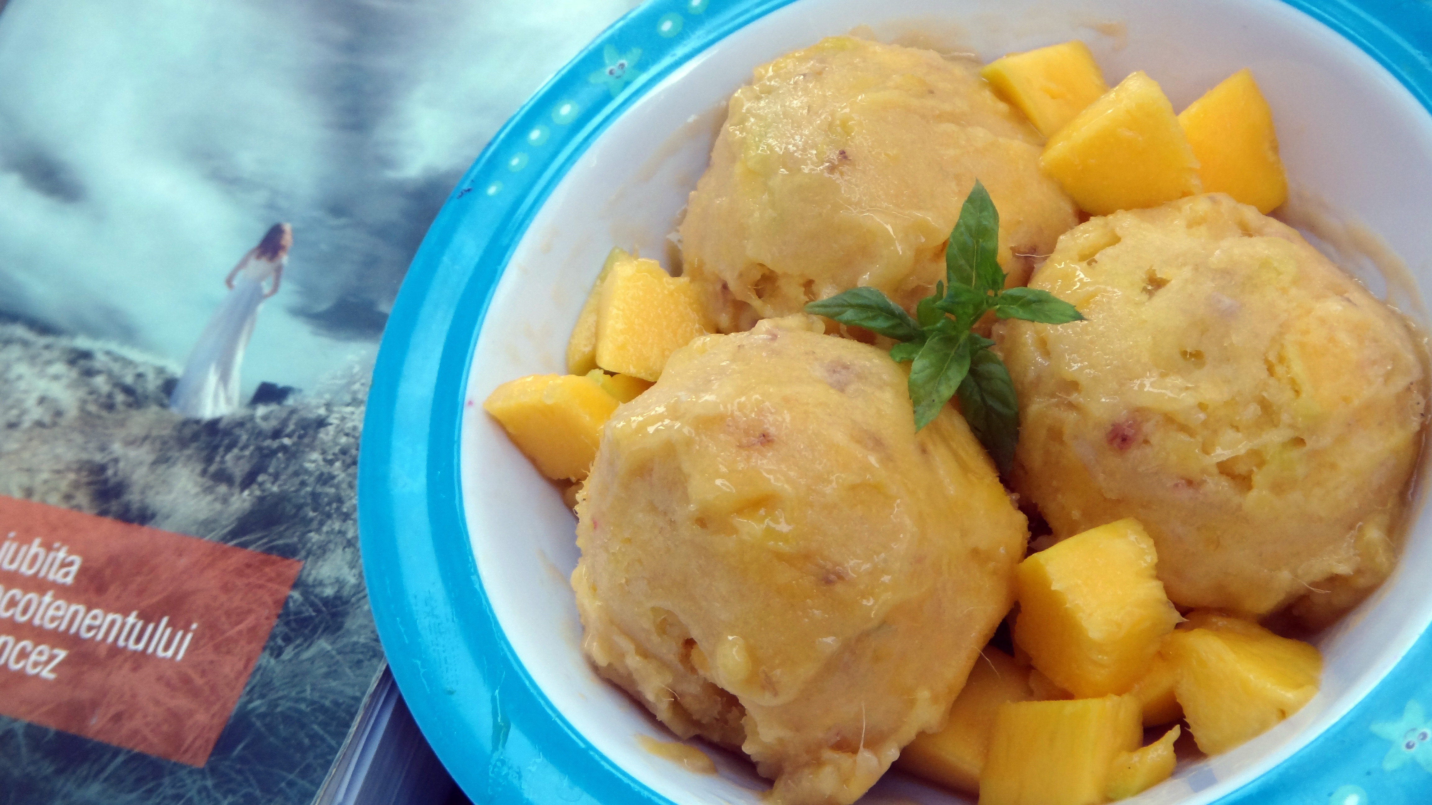 Chiar daca e sfarsit de vara si caldurile nu mai par sa fie atat de sufocante, dupa o zi de munca, cati dintre noi nu cauta inca refugiu in delectarea cu o inghetata ? Pentru mine vara aceasta a fost mai saraca…in ingredientele continute de o inghetata. Daca anul trecut, desertul meu preferat continea o intreaga lista : apa, zahar, grasime vegetala, lapte praf integral, lapte praf degresat, sirop de glucoza, dextroza, emulsificatori, stabilizatori, sare, aroma de unt, colorant caroten natural etc, anul acesta inghetata mea preferata contine doar 2 ingrediente: mango si banane. Dar oare calitatea, e direct sau invers proportionala cu numarul de ingrediente ?