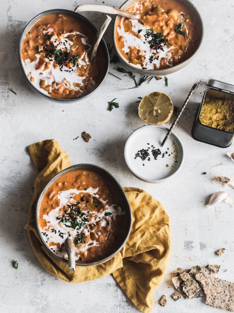 During the Christmas days I made lots of salads and the frigde was kind of full of leftover vegetables. First I thought of making a soup but I don’t really like to mix too many vegetables when making soups, so a dhal was more my idea. We usually eat the dhal with rice but to make it easier for our bellies, we had it simply, like a soup and this was excellent too!
